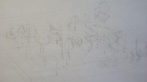 2016年12月24日 今さら後戻りはできません(*_*; 来月10日に長崎県大村市内の保育園(こども園)に持っていくスケッチなんですが、 小さく描き過ぎています(–;) 一応、下書きの下書きができたので、もう後戻りはできません…。 25m×16mの園庭を25cm×16cmで描いてしまっています。 ま、時間はあるので、地道にやっていきたいと思います(^^ゞ