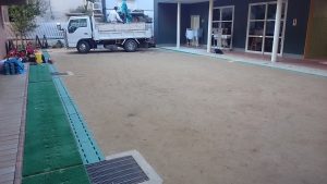 この度、以前に比べ遊具をバージョンアップさせたプランで園庭改造工事が始まりました(^^)