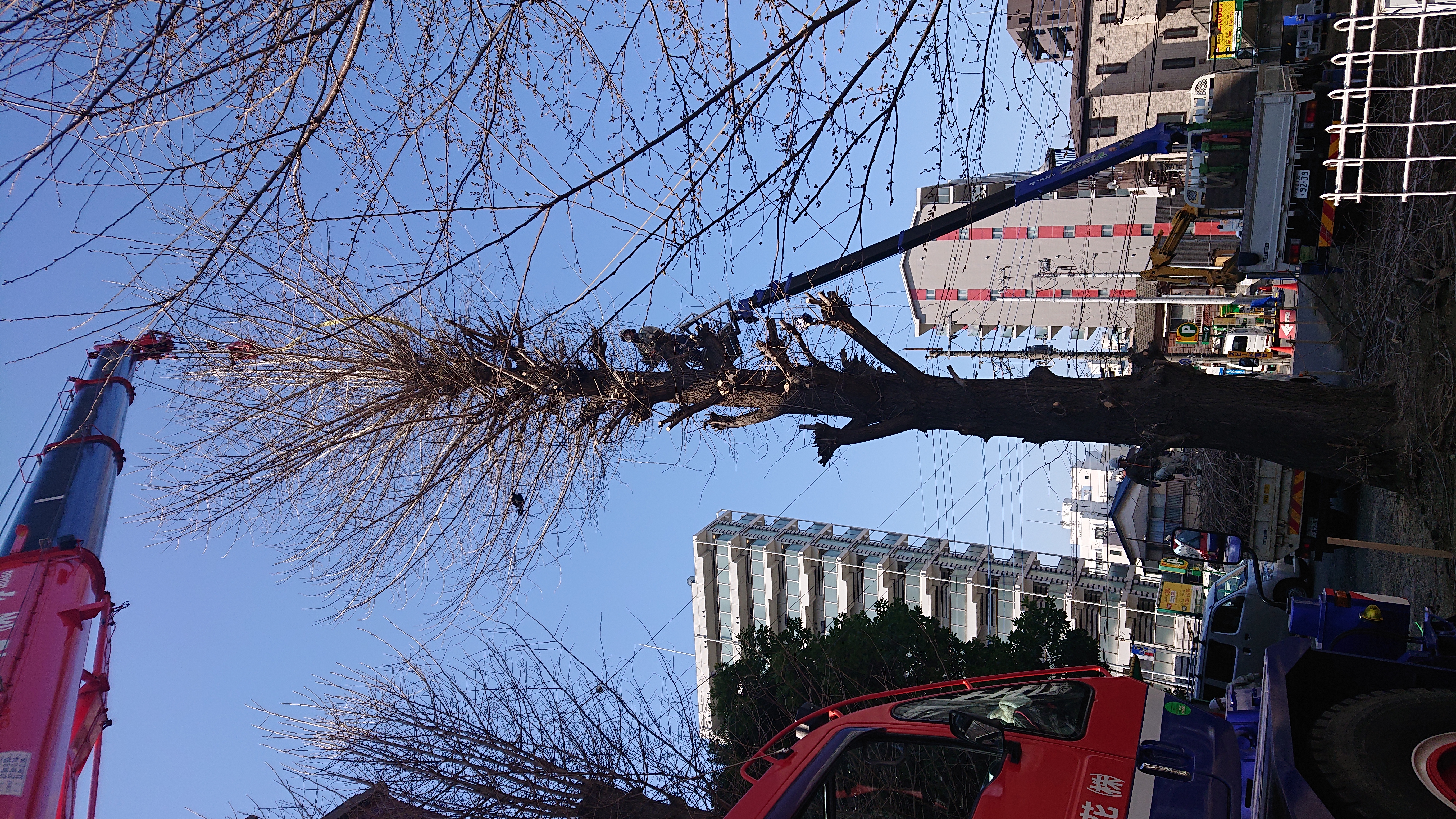 まさに今日から、今回の工事の最大のテーマ、幹周り約3mのイチョウの伐採・伐根です。
