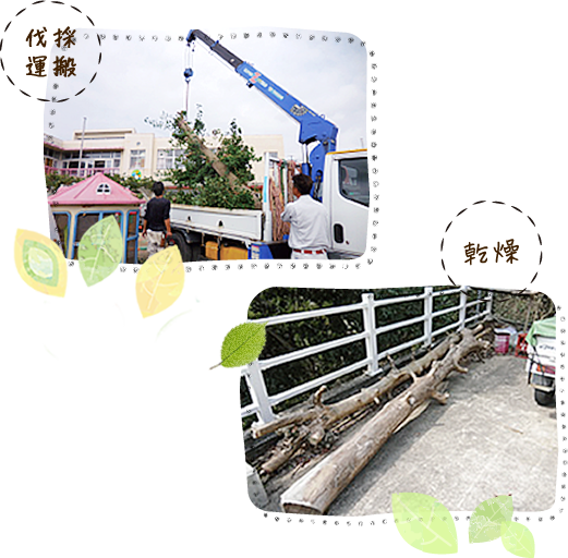 「さまざまな事情で伐採を余儀なくされた木。 皮を剥き、乾燥させることで、その”かたち”を変えて、園に帰ってくることができます。