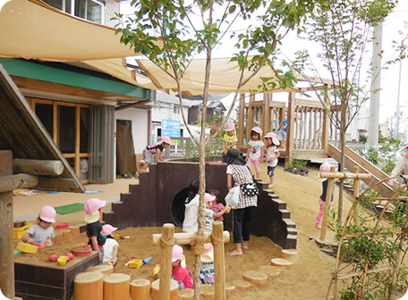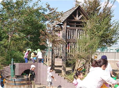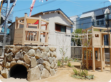 時とともに、自然のある園庭に溶け込むように馴染んでいきます。