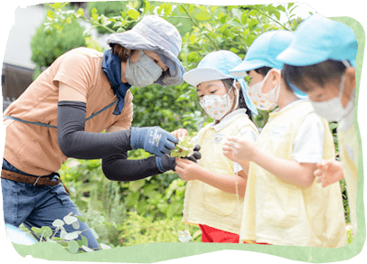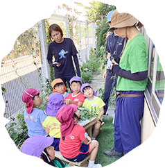 植物サポーターが、定期的(年に5回程度)に園を訪問し、子どもたちの草花あそびが盛り上がる多様な環境に園庭を保ちます。
