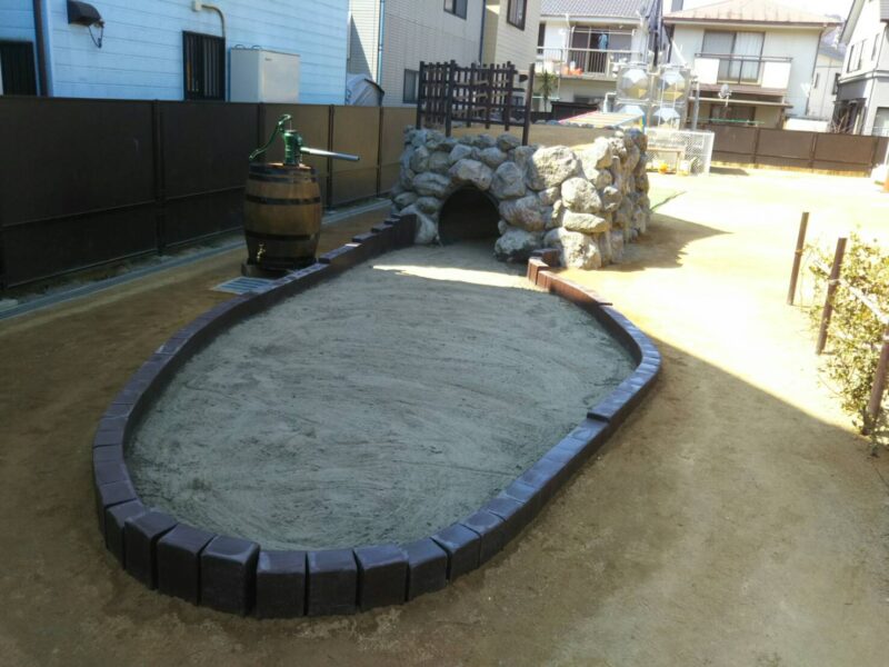 今回は、乳児の砂場に比べ、広く深い砂場と