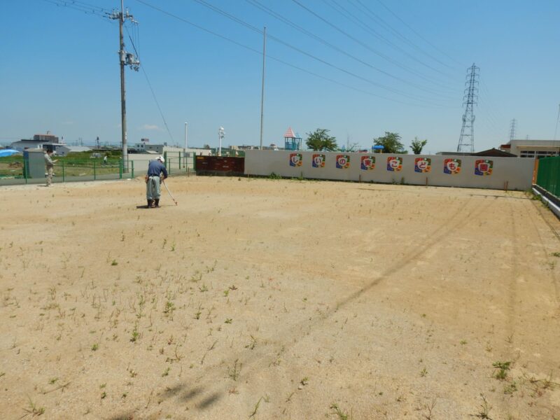 約420平米(約127坪)の広い第二園庭前面に芝生を貼りました。
