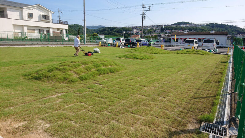 何もなった園庭に芝生が広がり、とても嬉しいです。子どもたちが走ったり寝転んだりできるのが楽しみです。