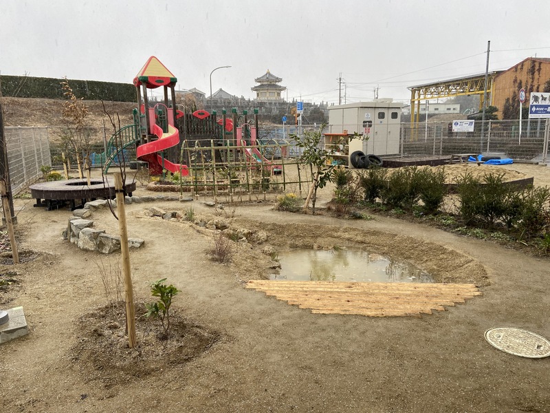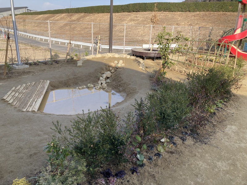 触れ合いなど、新たな遊びが広がる園庭が出来上がりました。