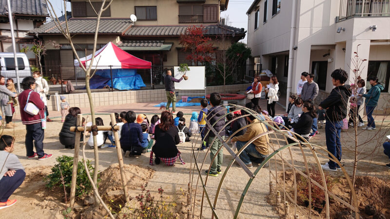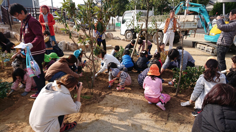 基盤整備をぼくたちが行い、実際の植え込みは植樹祭と称して
