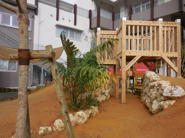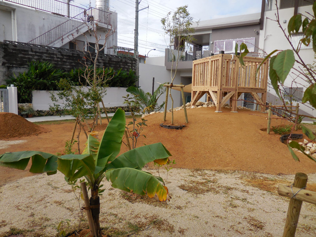 弊社の園庭作りのテーマである「自然と冒険」を、沖縄ならではの素材で実現できたことに、大変喜びを感じています。