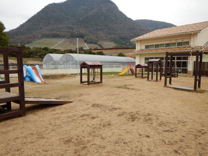 砂場・築山・滑り台・ごっこ遊びの小屋を設置し、
