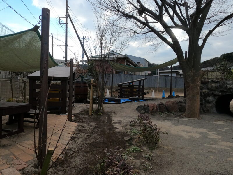 広く平らな園庭をいかにして遊び込める園庭にするか?