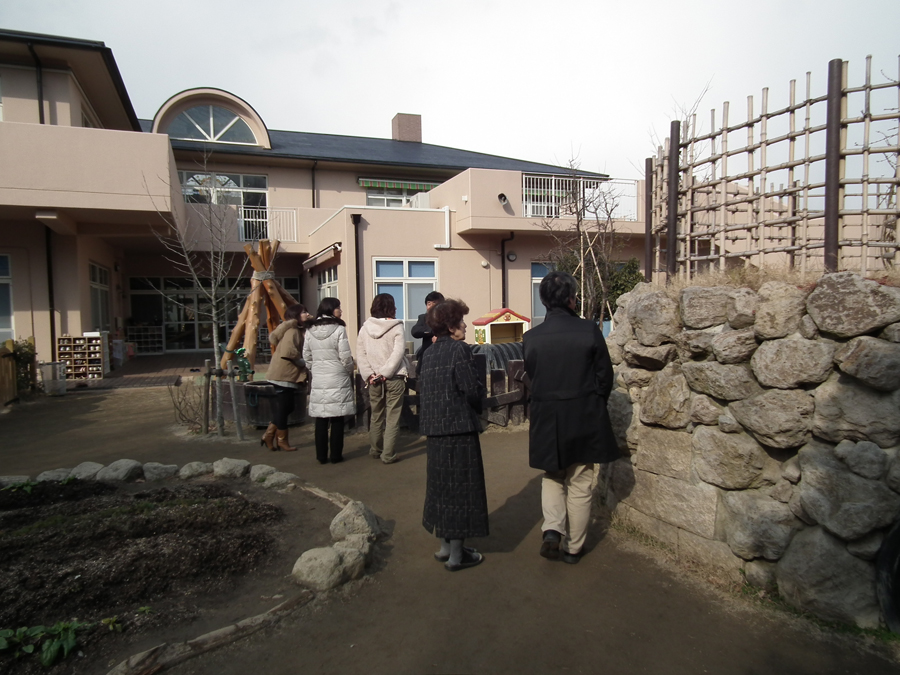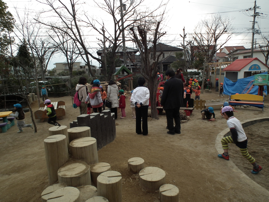 園庭見学ツアー 園庭見学ツアー 2012年02月17日 大津市内のとある保育園から園庭見学ツアーのご依頼を頂き、高槻市内の2つの保育園にご案内しました。それぞれの園長先生からは、工事に至るまでの経緯や工事後の子どもたちの変化など、貴重な意見を聞くことができました。 また、園庭内の樹木の種類と量の多さに感動した様子で、今後、計画にどのように反映させていくか、とても楽しみです。 今期中にその第一弾がスタートします。乞うご期待。