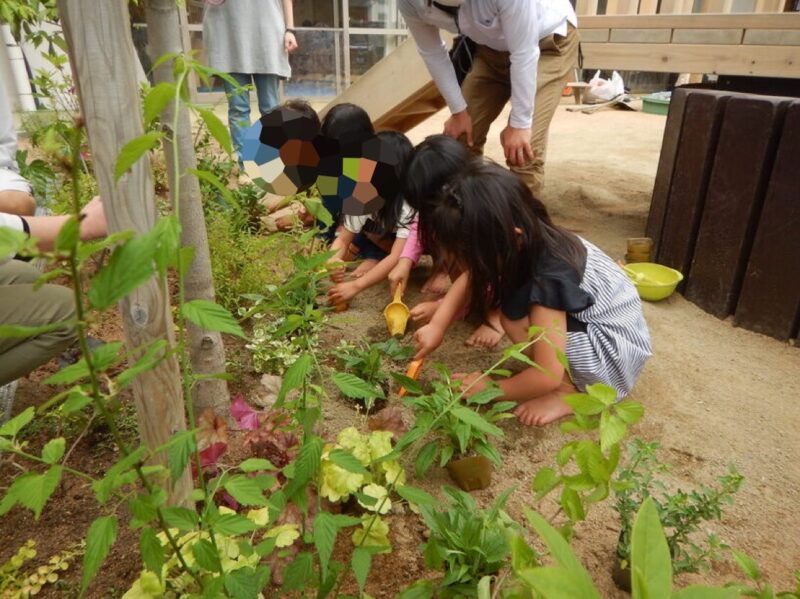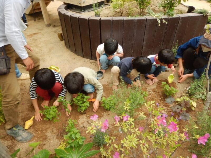 工事の最後には、子ども達と一緒に植物を植える作業を行いました。