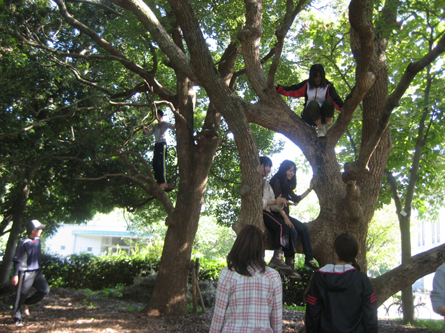 木登りでは、純粋に登る楽しさを体験すると同時に、自身の体を見つめ直すいい機会になり、五感を使ったネイチャーゲームでは、普段行き交う構内で身近な自然との新たな出会いに感動しました。