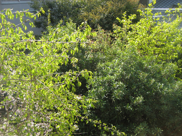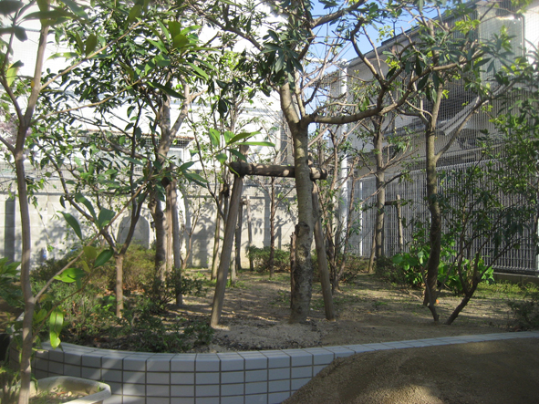 園庭の一角にあるうっそうとして誰も近寄らなかった森が、適度な剪定をすることによって明るくなりました。(上段の2つが作業前の様子です。)