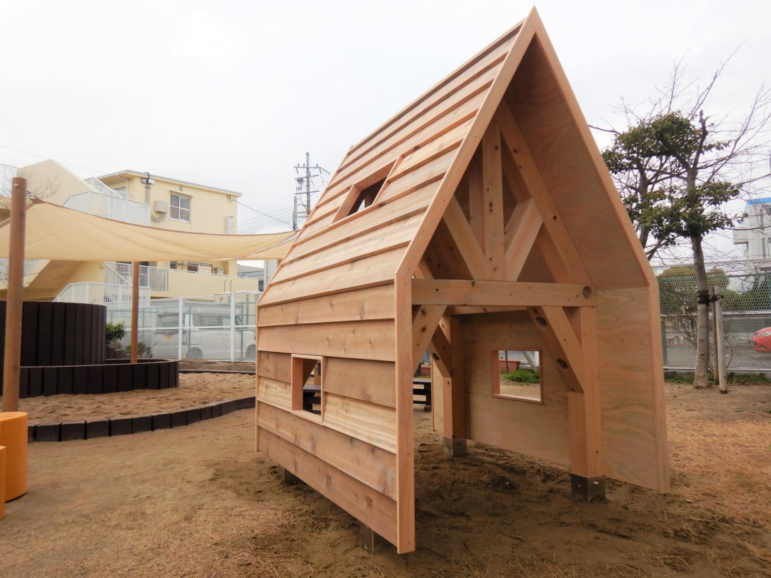 さらにこのエリアの中にはとんがり屋根の小屋があるので、おままごとの世界が大きく広がることを期待しています。