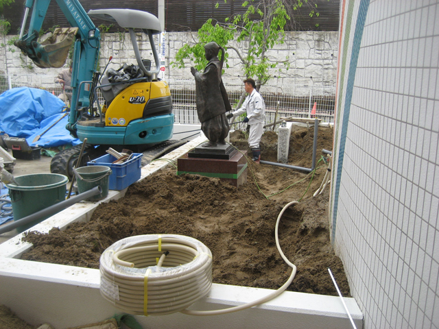 ヒラドツツジの花壇をビオトープ池につくりかえました。