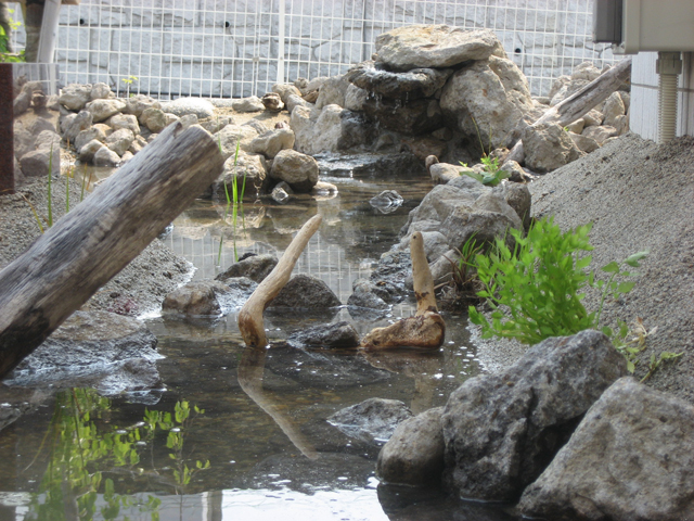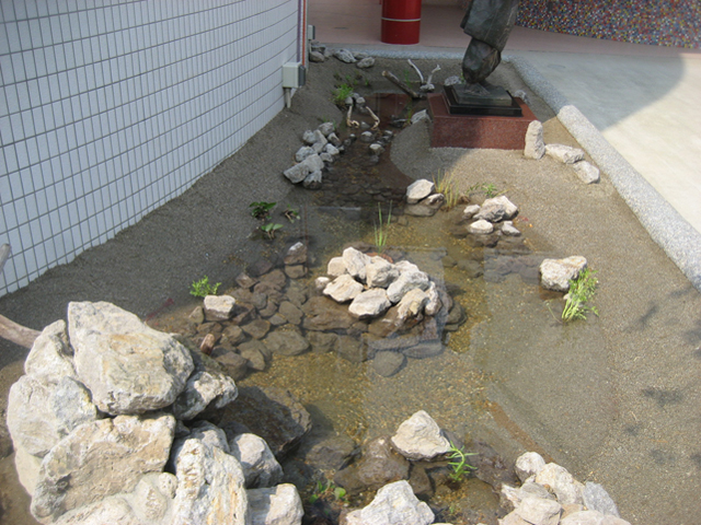 これまでのビオトープ池と違うところは、正面玄関前ということもあり観賞的要素が大きいということ。