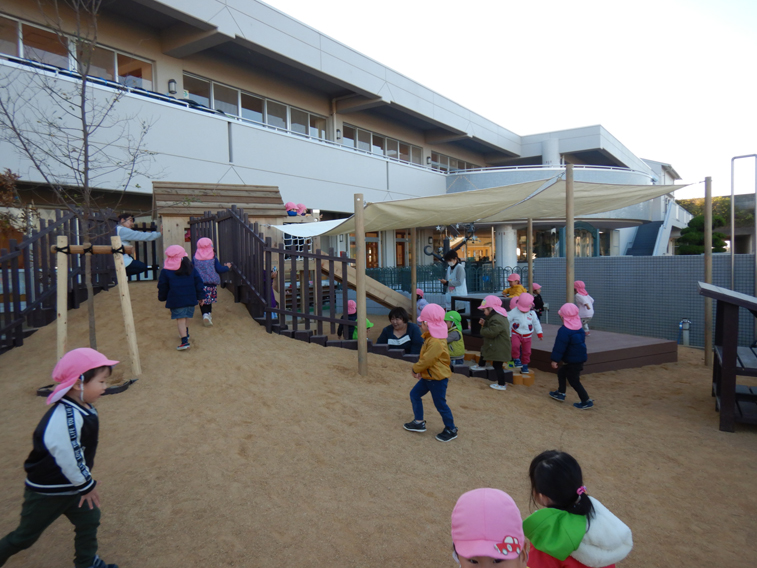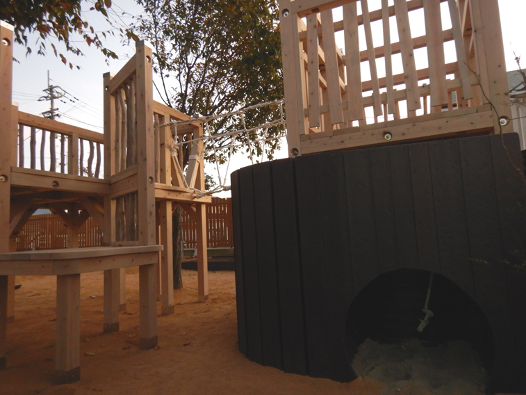 ここでも職員のアイデアをもとに提案と議論を重ねた結果、冒険心あふれる素敵な遊具が完成しました。