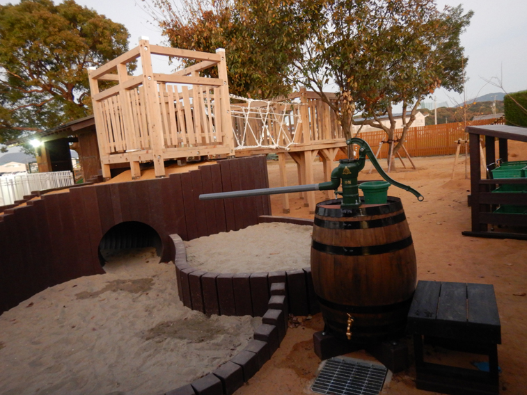 近くには、がちゃぽんポンプがあるので、この二つの砂場でどのような遊びが展開されるのか、とても楽しみです。