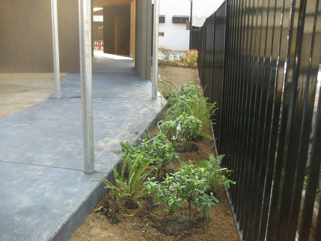 今回は、園舎建て替えに伴い新たに2棟の保育室ができたので、その周りに植栽をしました。