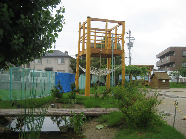 この園庭では、子どもたちが日々の遊びの中で色んな生きものと出会い・触れ合い、冒険を堪能し、遊びを創造する力を育むことできるでしょう。