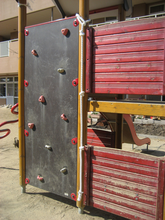 そこで、工夫することで遊びが広がるよう、その遊具の柱に一本のロープを取り付けました。