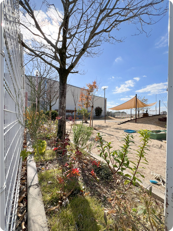 さらに、既存の花壇には季節折々の低木やたくさんの草花を植え、虫が集まり、草花遊びができる花壇に変わりました。