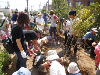 園として、親子参加イベントを通して、園と保護者、また保護者同士の交流を大切にしたいと考えている中で、園庭づくりのお話しをいただきました。そこで、親子参加の植樹祭をご提案し、実施することになりました。