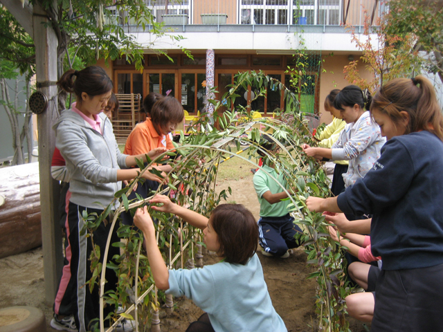 また先生たちが作業に関わったことで、各々の保育の中で、ここをどのように使っていくかを考えるいい機会になったと思います。