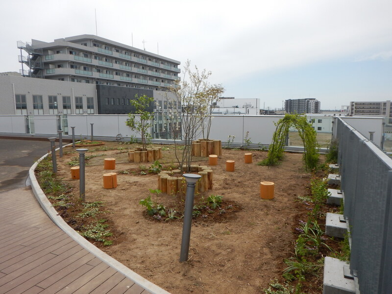 園庭が屋上にあるこども園さんで、畑はあるけれどもう少し子ども達が