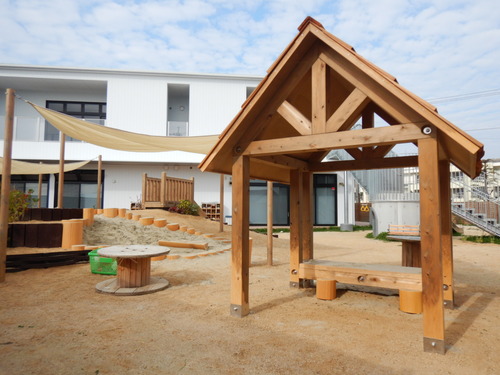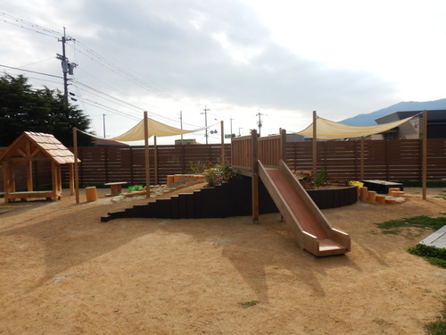 滑り台や木製の小屋もあり、色々な遊びを楽しむことが出来ます。