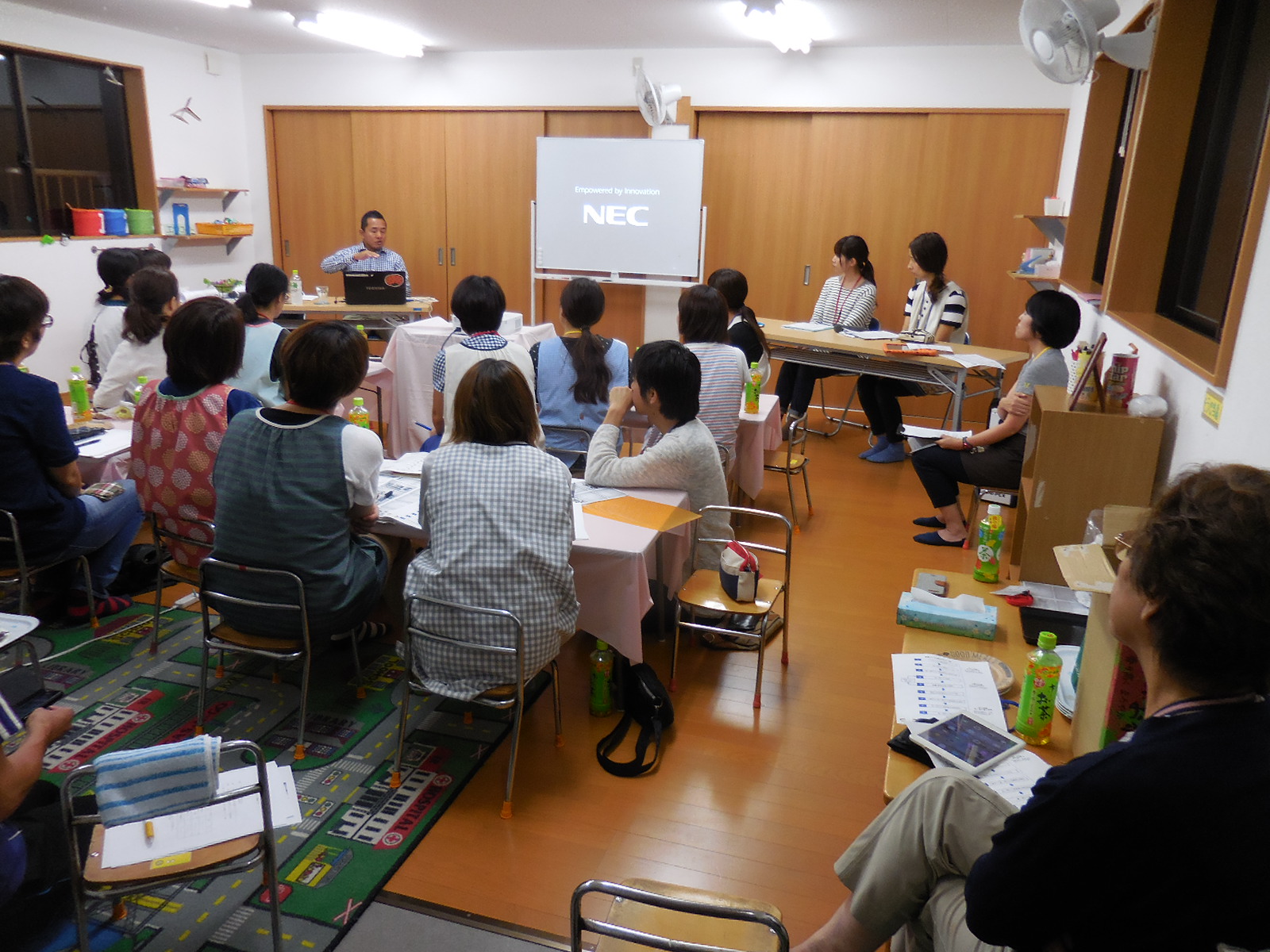 園庭改造に先立ち、職員向けの園内研修会を行いました。