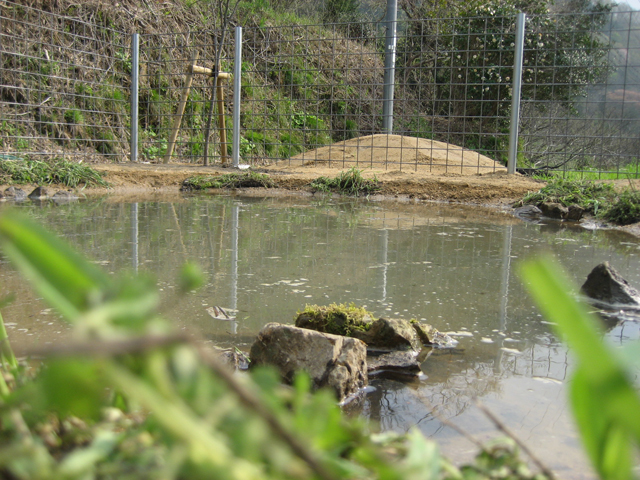 ただここは、シカやイノシシもやってくるので、それらの沼田場にならないように、周りを柵で囲いました。