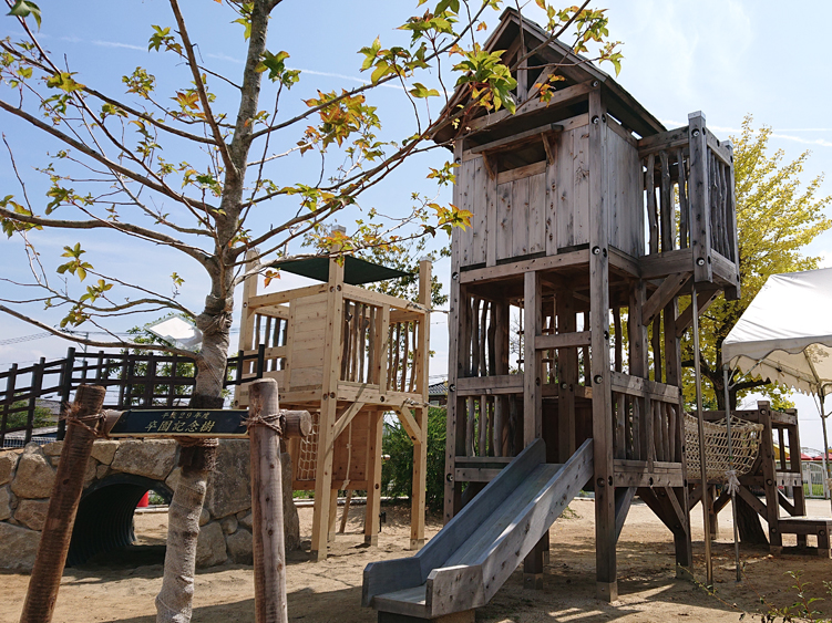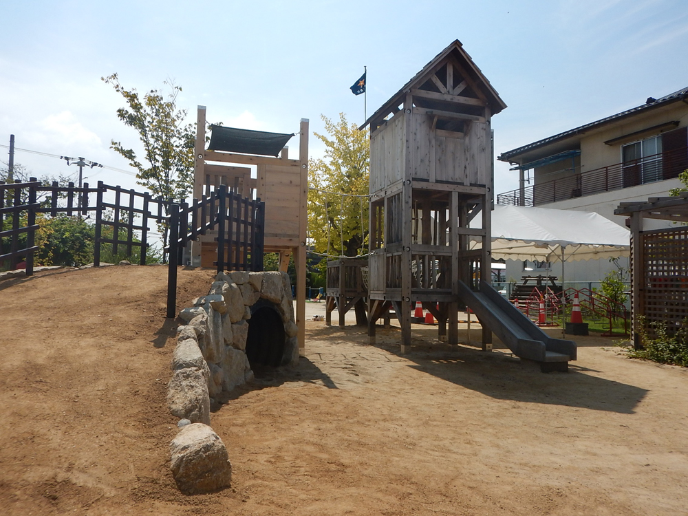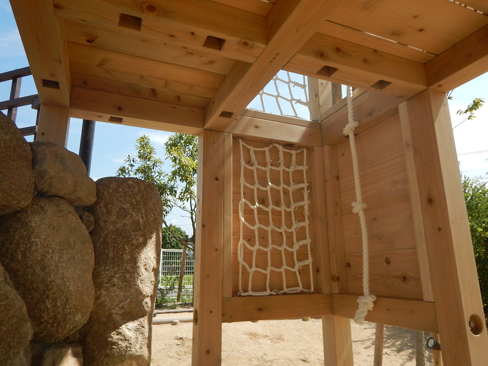 その上に新たな木製遊具を据え、その遊具が第二期工事でつくった遊具と