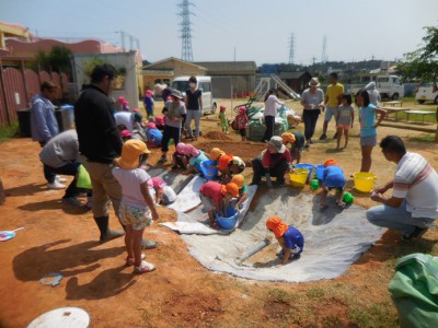 砂利の駐車場を乳児園庭にしました。